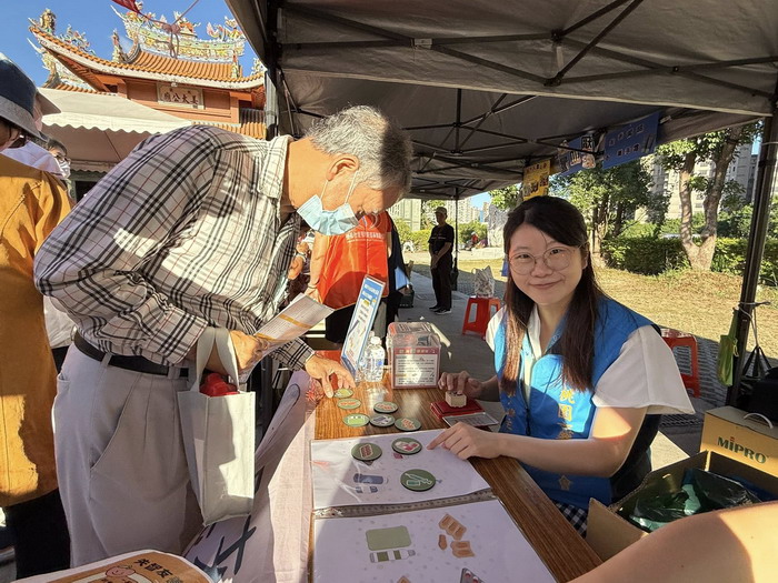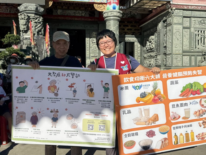 志工與社工一起向大家介紹日照服務與失智症照護。