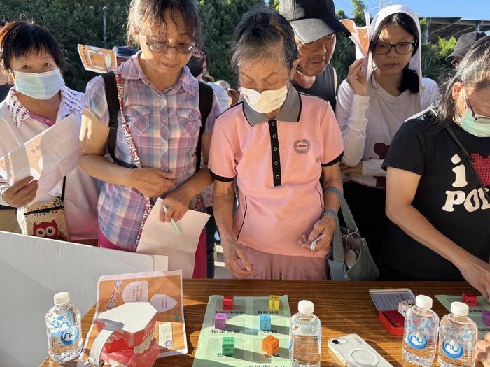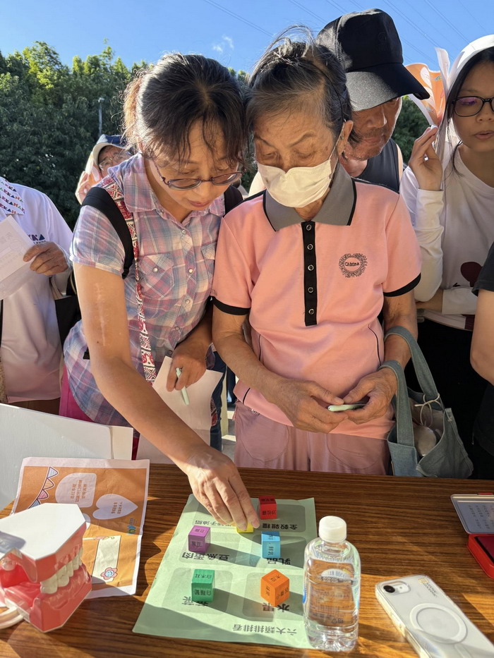 我們這次有兩位優秀的延緩失能指導員——蔡老師與賴老師,帶領老幼共玩營養賓果遊戲,讓均衡飲食的觀念在笑聲中傳遞。