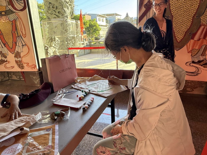 年輕世代在廟埕裡認識多元宗教,也體驗在姜太公面前、門神面前「敲敲染」的樂趣。